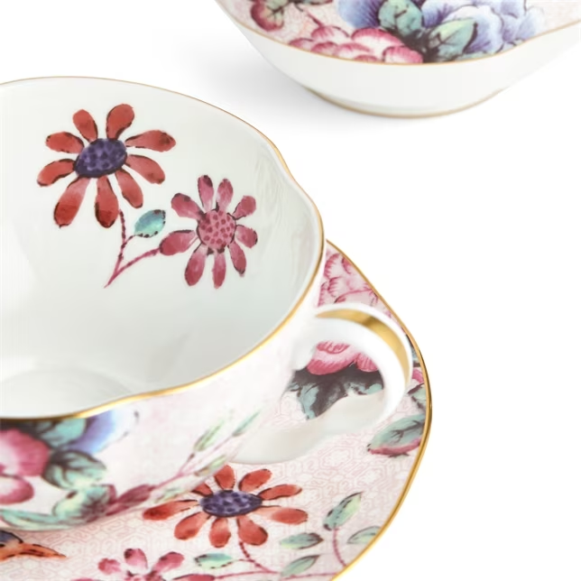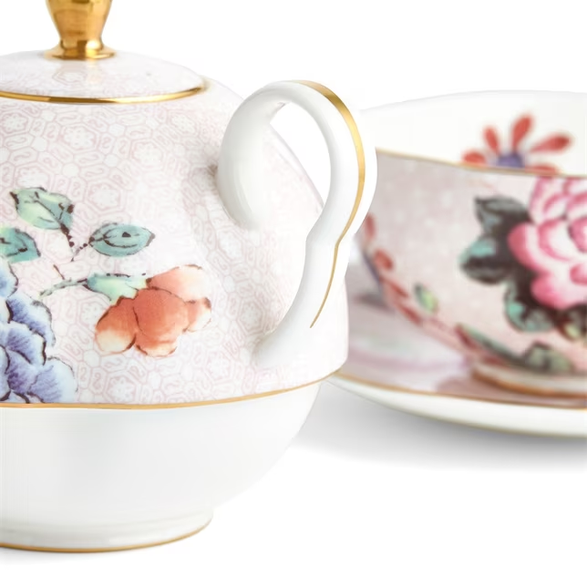 Designed in fine bone china and finished to the highest quality, the ingenious Cuckoo Tea for One cleverly combines teapot, teacup and saucer in one for the perfect cup of tea or infusion. Originally inspired by beautifully vivid birds and gorgeous, colorful Chinese flowers taken from historical Wedgwood pattern archives dating back to the early 19th century, the sophisticated Cuckoo pattern was revived in 1973. The generous blooms in pink, blue and orange with their delicate green foliage are beautifully depicted alongside the whimsical cuckoo bird and highlighted with 24 karat gold gilding for a touch of pure luxury. Presented in an elegant Wedgwood blue gift box it makes the ideal gift for tea lovers, complementing the other exquisite teaware pieces in the Cuckoo collection. Together, they create a stunning, colorful display for a perfect afternoon tea in the finest English tradition.